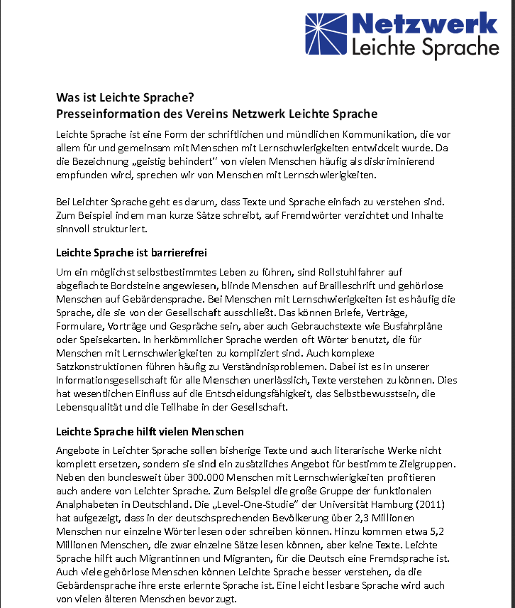 Indeed, most expats I know who have only a basic knowledge of German tend to simply hand their contracts, tax forms, and newspapers over to a German friend for an explanation. For such people, Leichte Sprache versions would be a much more surmountable hurdle.